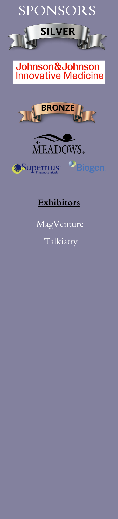 7:45 Registration and Breakfast 8:45 Session 1: "Improving the Prediction and Treatment of Adolescent Suicide" Speaker: Dr. Randy Auerbach 9:45 Refreshment Break with Exhibitors 10:15 Session 2: "Brain Stimulation & Neurosurgical Collaborations" (Speaker TBA) 11:15 Session 3: "Social Media, Big Data, and the Prediction of Risk" (Speaker TBA) 12:15 Lunch with Exhibitors 1:15 Session 4: "Advances in Psychosis Treatment - New Antipsychotics, Tardive Dyskinesia, GLP1s and More" Speakers: Drs. Owen Muir & Vikas Gupta 2:15 Session 5: "Ketamine, TMS, and Implementing new Treatments into Practice" (Speaker TBA) 3:15 Refreshment Break with Exhibitors 3:45 Session 6: "Psychedelics" Speaker: Dr. Joshua Siegel 4:45 Closing Remarks